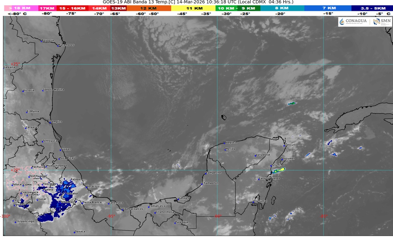 Entrada de aire húmedo proveniente del mar Caribe hacia la península de Yucatán, mantendrá en el estado de Quintana Roo cielo parcialmente nublado con incremento de nublados durante el transcurso…