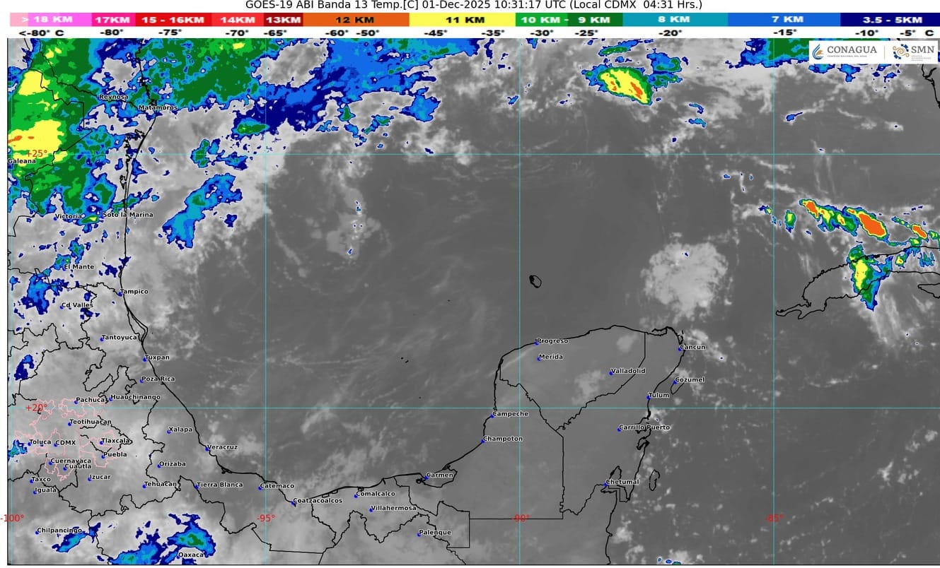 Afluencia de humedad del mar Caribe, originará en el estado de Quintana Roo cielo parcialmente nublado con incremento de nublados durante el transcurso del día, lluvias aisladas, ambiente caluroso durante el día y templado a fresco al amanecer. Viento con rachas de 40 km/h. Se prevé bancos de niebla en zonas rurales, urbanas y tramos carreteros.