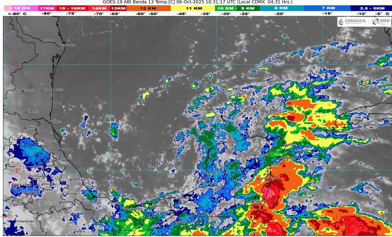 Desplazamiento de la onda tropical número Treinta y seis sobre el sureste del país, una circulación ciclónica en altura sobre el golfo de México y la entrada de humedad proveniente del mar Caribe, mantendrán en el estado de Quintana Roo cielo medio nublado a nublado, lluvias muy fuertes con lluvias puntuales intensas (acumulados de 75 a 150 mm) acompañadas de actividad eléctrica, ambiente muy caluroso. Viento con rachas de 40 a 50 km/h en zonas de tormenta y costas del estado, así como la probable formación de trombas marinas.