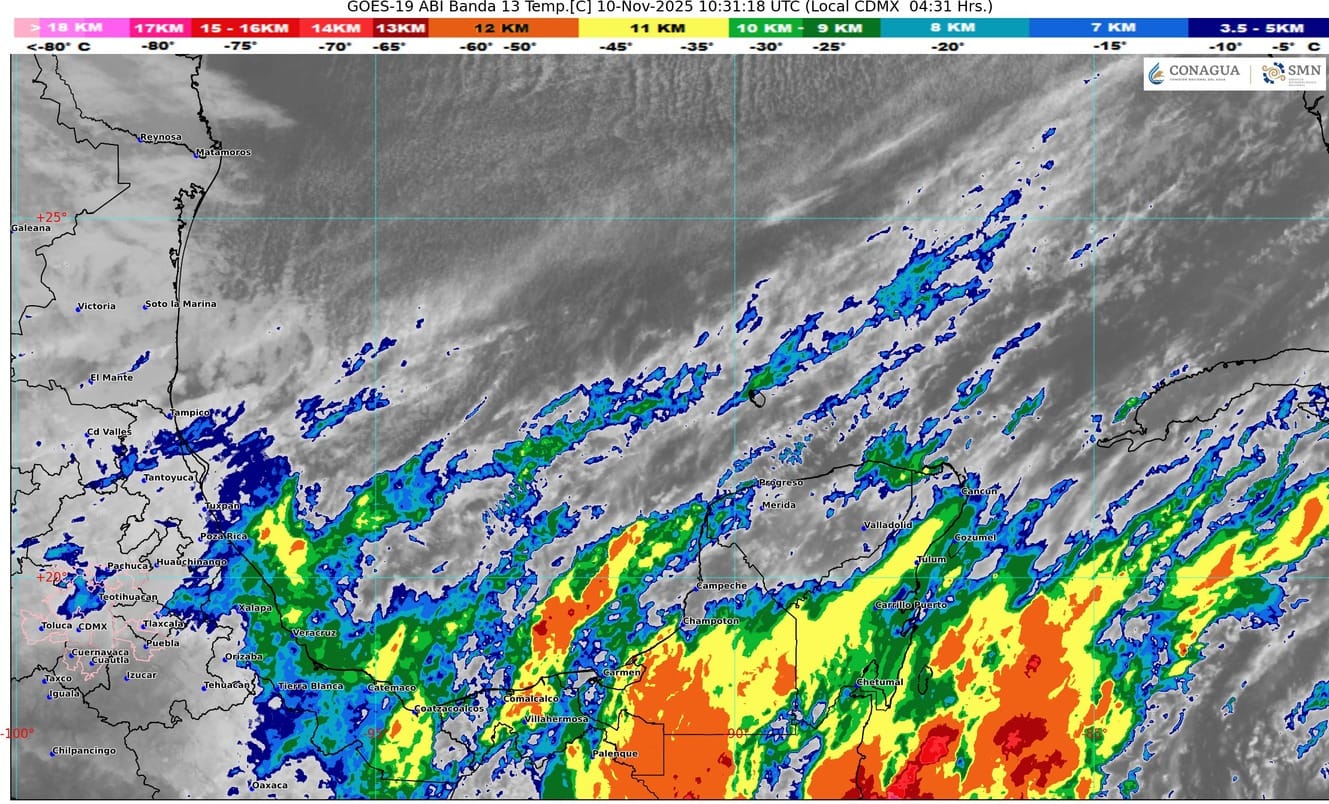 El frente frío número Trece se desplazará sobre la península de Yucatán, originará en el estado de Quintana Roo cielo nublado durante el transcurso del día, intervalos de chubascos con lluvias puntuales fuertes (acumulados de 25 a 50 mm) sobre los municipios del estado, ambiente caluroso durante el día. El viento se fijará del norte y noreste con rachas de 40 a 60 km/h y oleaje elevado. Se prevé bancos de niebla en zonas rurales, urbanas y tramos carreteros.