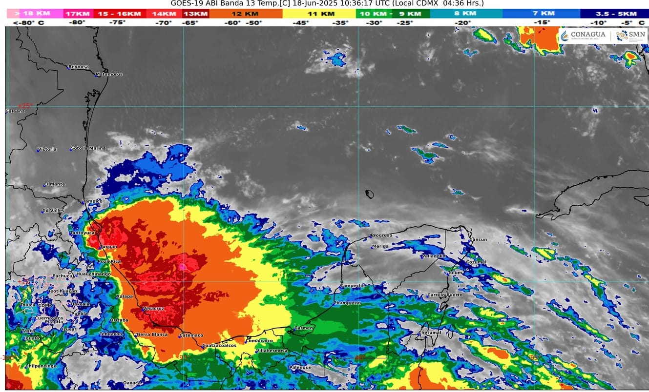 Afluencia de aire marítimo tropical proveniente del mar caribe provocado por la amplia circulación del ciclón tropical Erick localizado en el Océano Pacifico frente a las costas de Chiapas y Oaxaca, originará en el estado de Quintana Roo cielo medio nublado a nublado durante el transcurso del día, chubascos con lluvias puntuales fuertes acompañadas de actividad eléctrica, ambiente muy caluroso durante el día y caluroso por la noche y al amanecer. Viento con rachas de 50 a 70 km/h principalmente sobre las zonas de costa.