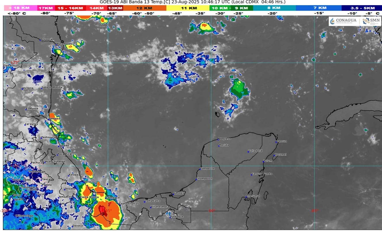 Acercamiento y desplazamiento de la onda tropical número Veinticinco sobre el sur de la Península de Yucatán y la entrada de humedad, mantendrán en el estado de Quintana Roo cielo parcialmente nublado con incremento de nublados durante el transcurso del día, lluvias e intervalos de chubascos, ambiente muy caluroso durante el día y cálido a caluroso por la noche y al amanecer. Viento con rachas de 50 km/h principalmente sobre las zonas de costa del estado.