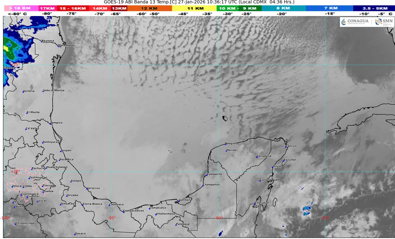 La masa de aire ártico modificado que impulsó al frente frío número Treinta mantendrá sobre el estado de Quintana Roo evento de “Norte” con rachas de 50 a 70 km/h, oleaje de 2 a 3 metros de altura, cielo parcialmente nublado a nublado, lluvias con intervalos de chubascos (acumulados de 5 a 25 mm), ambiente templado durante el día y fresco por la madrugada y al amanecer. Se prevé bancos de niebla en zonas rurales, urbanas y tramos carreteros.