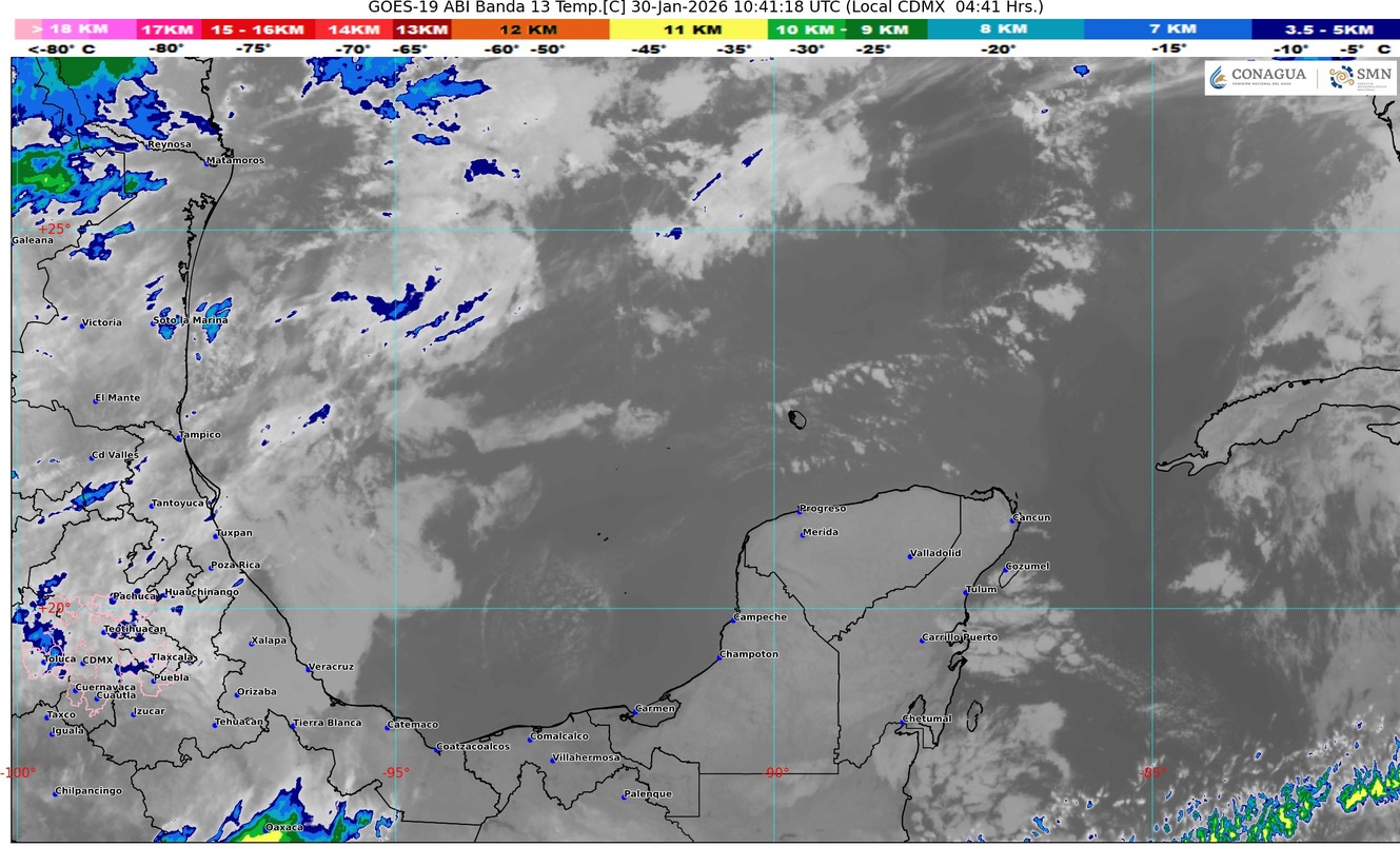 Continúa un sistema de alta presión localizado sobre el golfo de México mantendrá sobre el estado de Quintana Roo viento fresco de componente norte con rachas de 40 km/h, cielo parcialmente nublado, sin lluvias, ambiente cálido a templado durante el día y fresco a frío por la madrugada y al amanecer. Se prevén bancos de niebla en zonas rurales, urbanas y tramos carreteros.