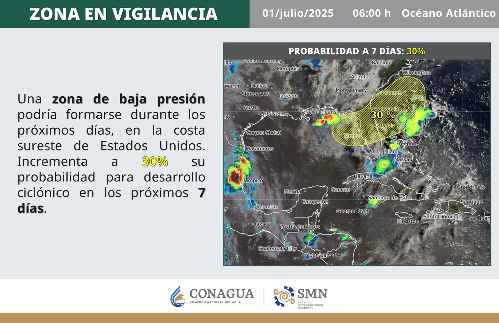 Simultáneamente, canales de baja presión sobre el norte, centro, noreste y oriente de la República Mexicana, en interacción con los desprendimientos nubosos del huracán Flossie en el Pacífico Mexicano, con una vaguada en altura e inestabilidad atmosférica, propiciarán chubascos y lluvias fuertes a puntuales muy fuertes en dichas regiones. A su vez, otro canal de baja presión en el sureste del pais y la península de Yucatán, en combinación con el ingreso de humedad proveniente del golfo de México y mar Caribe, originarán chubascos y luvias fuertes a puntuales muy fuertes en las regiones referidas. Finalmente, se mantendrá el ambiente caluroso a muy caluroso sobre entidades del noroeste y norte del territorio nacional, además de la pen ínsula de Yucatán.