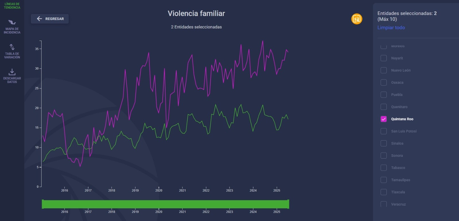 El comportamiento de estas estadísticas es la muestra del avance que hay sobre la incidencia delictiva “violencia familias” en los hogares de Quintana Roo, más aquella que no se reporta, la llamada cifra negra. También demuestra que no se ha socializado el tema de prevención y menos la penetración a los estratos donde existe mayor posibilidad de violencia, aunque no es exclusivo, es en los suburbios donde mayor se da.