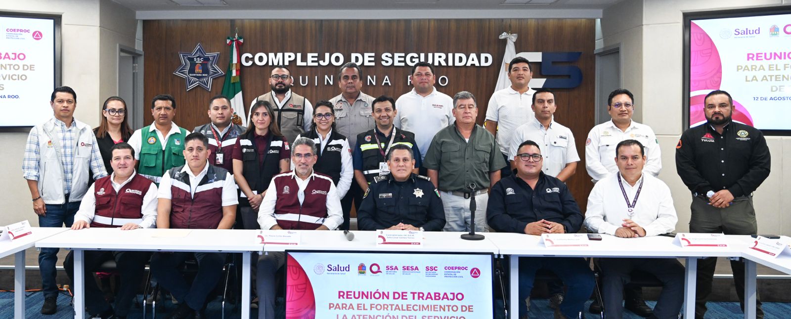 En el encuentro participaron el secretario de Salud, Flavio Carlos Rosado; el secretario de Seguridad Ciudadana, Contralmirante Julio César Gómez Torres; el coordinador estatal de Protección Civil, Guillermo Núñez Leal, y se convocó también a las direcciones de protección civil de los 11 municipios de Quintana Roo.