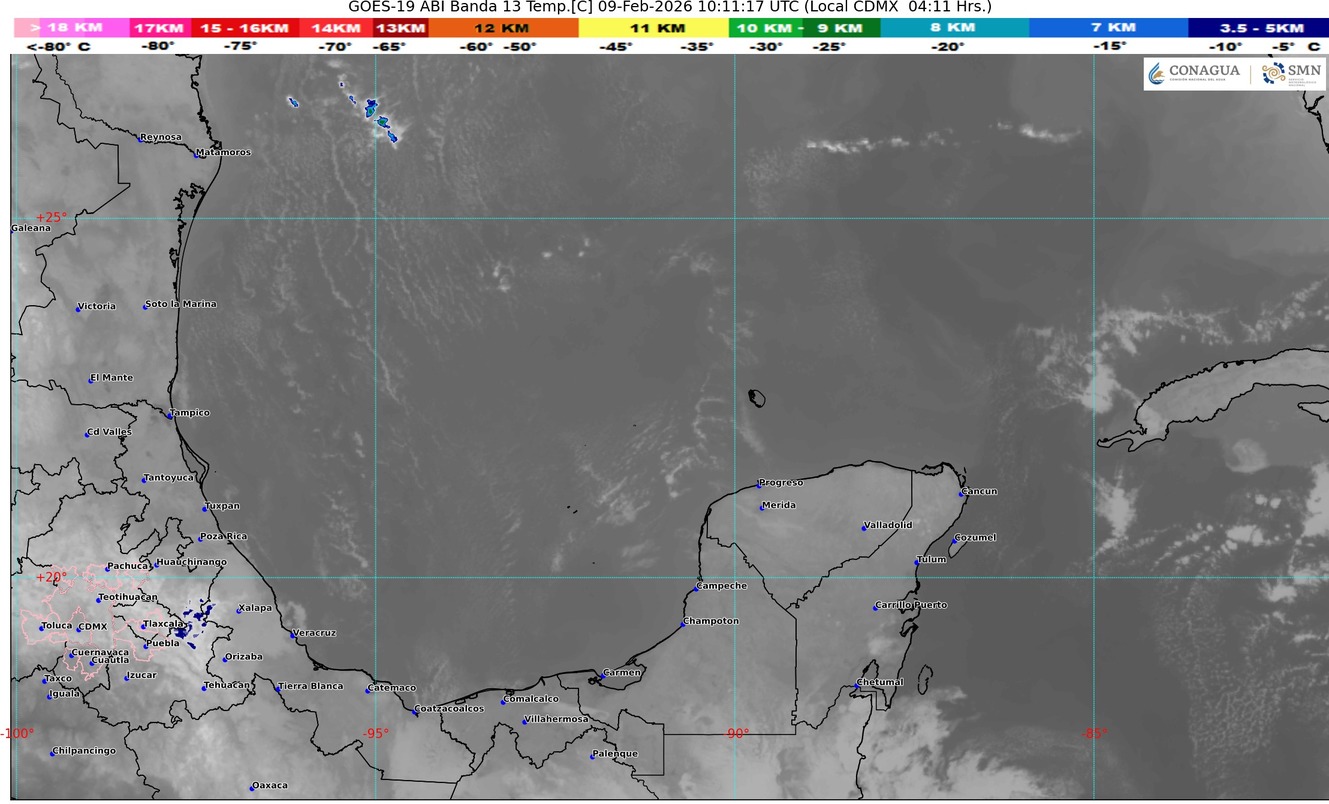 Se mantiene un sistema de alta presión localizado sobre el noreste del golfo de México impulsa vientos del noreste y este, originará cielo parcialmente nublado con incremento de nublados durante el transcurso del día, lluvias aisladas (acumulados menoras a 5 mm), ambiente cálido a caluroso durante el día y fresco a frío por la madrugada y al amanecer, viento con rachas de 40 km/h. Se prevé bancos de niebla en tramos carretero, zonas rurales y urbanas del estado.