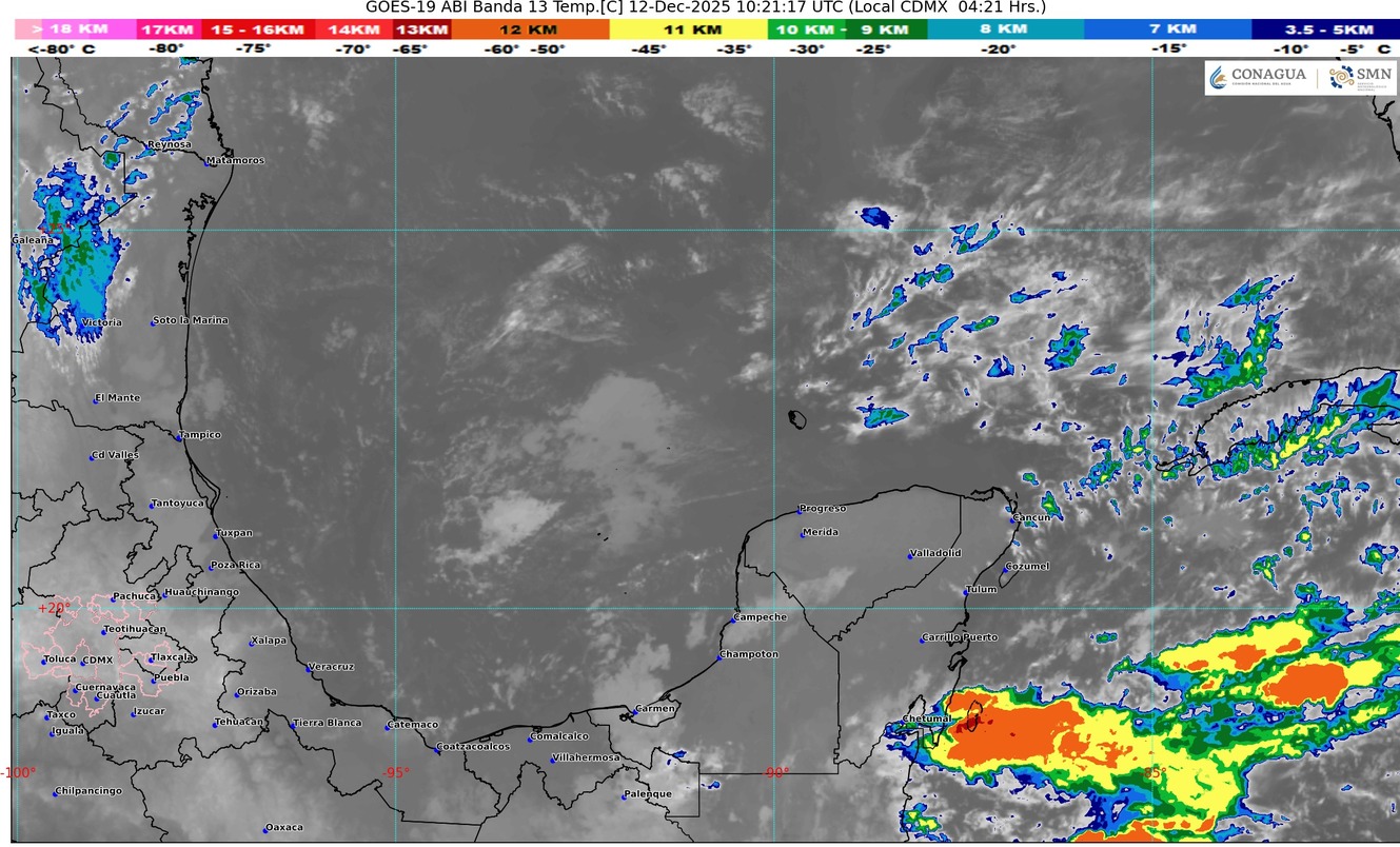 La entrada de humedad del mar caribe hacia la península de Yucatán, originará en el estado de Quintana Roo cielo medio nublado a nublado durante el transcurso del día, intervalos de chubascos con lluvias puntuales fuertes (25 a 50 mm), ambiente caluroso durante el día. Viento con rachas de 40 km/h. Se prevé bancos de niebla en zonas rurales, urbanas y tramos carreteros.