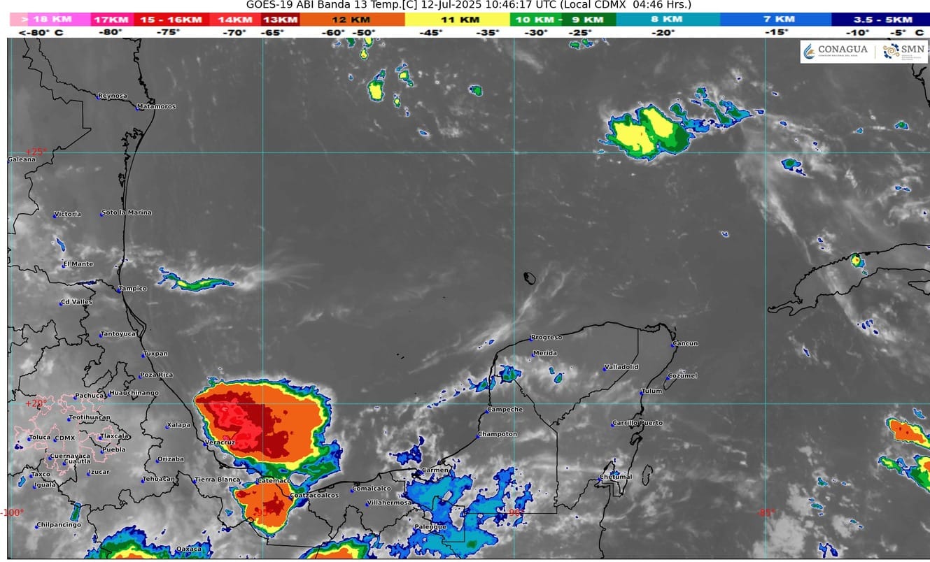Onda tropical (número 12) que se localiza al occidente del mar Caribe y que se aproxima a la península de Yucatán y la afluencia de aire marítimo con variable contenido de humedad, mantendrán en el estado de Quintana Roo cielo parcialmente nublado con incremento de nublados durante el transcurso del día, lluvias con intervalos de chubascos y actividad eléctrica, ambiente muy caluroso durante el día y cálido a caluroso por la noche y al amanecer. Viento con rachas de 50 km/h principalmente sobre las zonas de costa del estado.