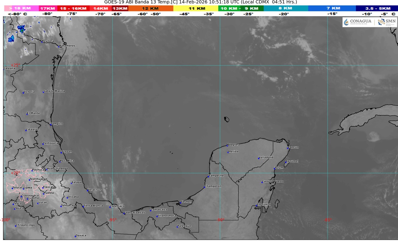 Circulación anticiclónica en niveles medios de la atmósfera localizada sobre la mayor parte del territorio nacional, mantendrá condiciones mayormente estables, en el estado de Quintana Roo prevalecerá cielo parcialmente nublado, sin lluvias, ambiente caluroso durante el día, bancos de niebla en tramos carretero, zonas rurales y urbanas del estado. A partir de este sábado se prevé inicie un evento de “Surada” con rachas de viento de 40 a 60 km/h sobre el territorio estatal, principalmente sobre las zonas de costa.