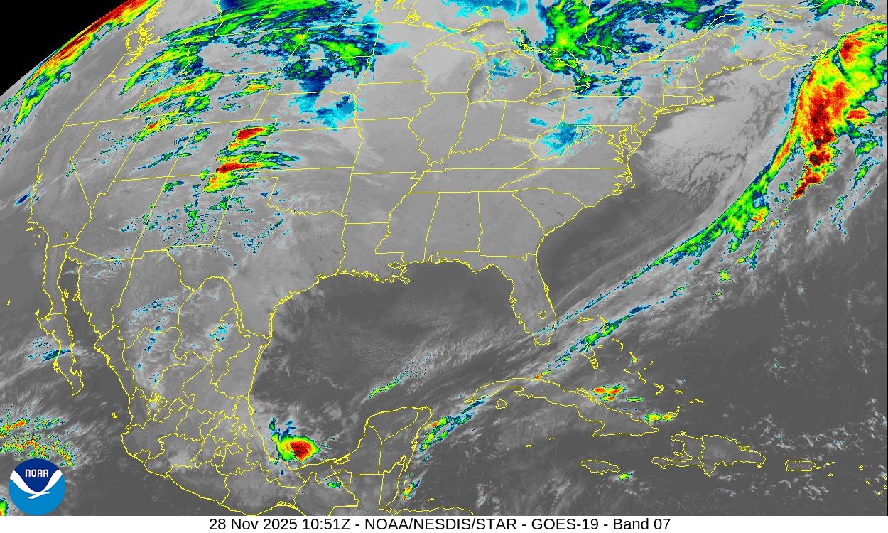El frente frio número Dieciséis se extenderá sobre la península de Yucatán, originará en el estado de Quintana Roo cielo nublado, intervalos de chubascos con lluvias puntuales fuertes (acumulados de 25 a 50 mm) y actividad eléctrica, ambiente cálido durante el día y templado al amanecer. Viento del norte y noreste con rachas de 40 a 60 km/h, oleaje de 1.5 a 2.5 metros de altura y la probable formación de trombas marinas. Se prevé bancos de niebla en zonas rurales, urbanas y tramos carreteros.